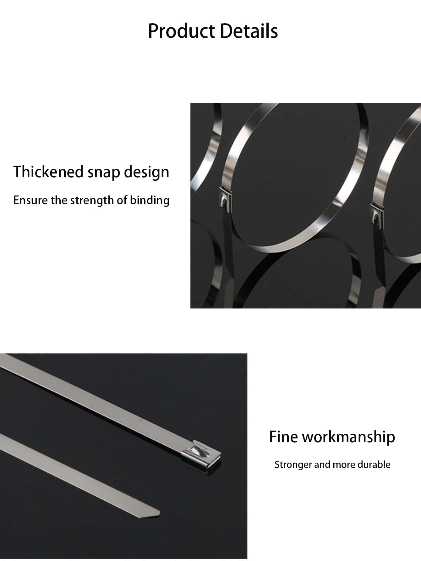 100pcs 4.6mm Width 304 Stainless Steel Self-Locking Cable Ties For Ship Equipment Fastening And Bundling, Metal Zip Ties