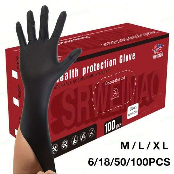 100pcs Black Disposable Nitrile Gloves, Durable Cleaning Gloves, Tattoo Gloves, Waterproof Multipurpose Gloves, Suitable For Kitchen, Barbecue, Gardening, Cleaning, Hair Coloring, Beauty Salon, Household Tools