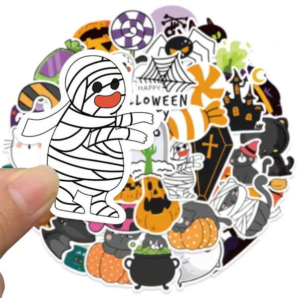 100pcs Cartoon Pumpkin, Monster & Skull Pattern Halloween Party Decorative Stickers For Luggage, Guitar, And Printing Paper