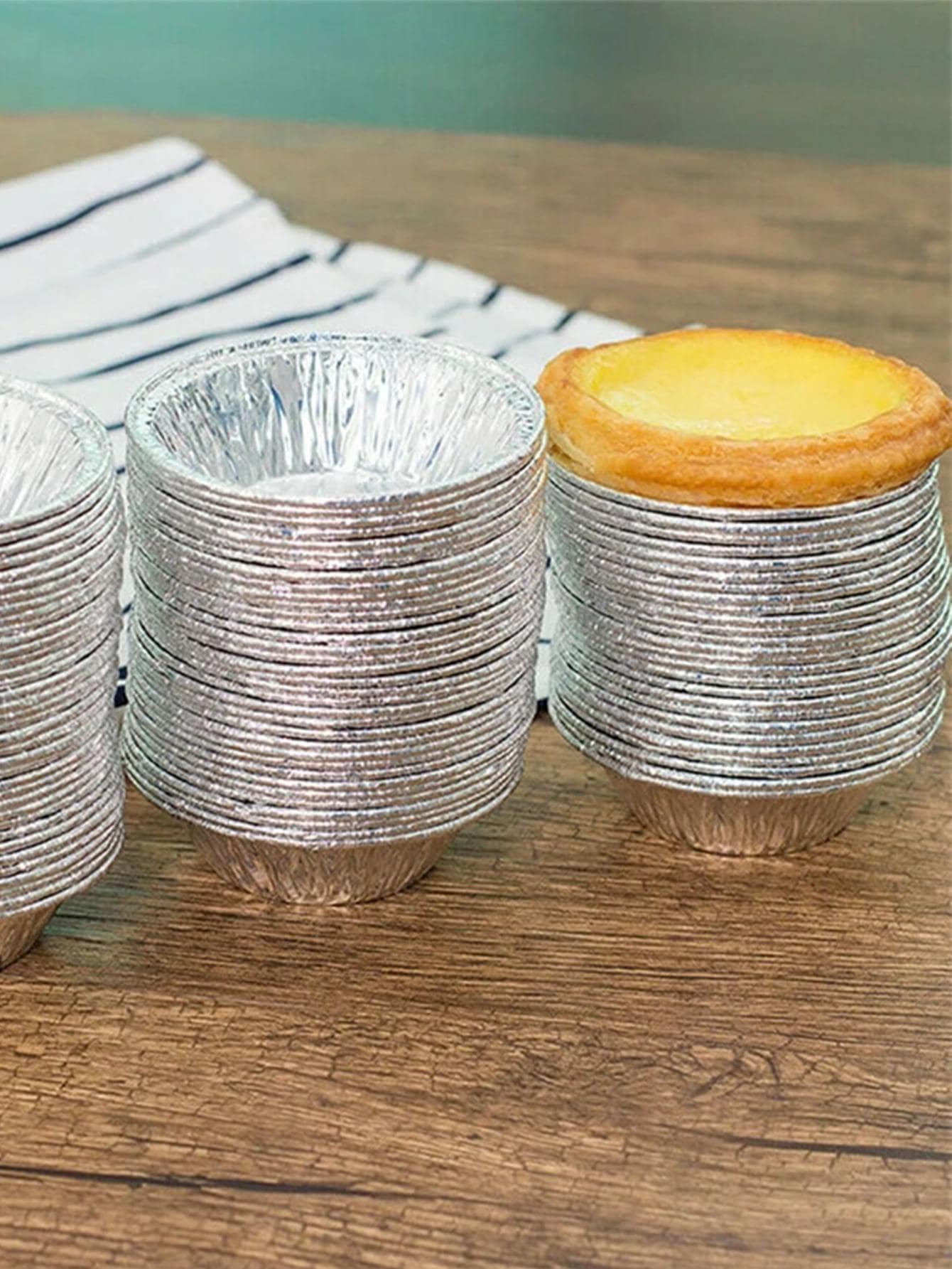 100pcs Disposable Aluminum Foil Baking Molds For Cookies, Muffins, Cupcakes, Egg Tarts, Round Shape
