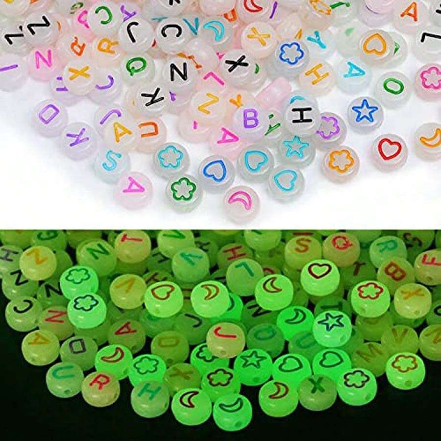 100pcs Lovely Luminous Acrylic Round Alphabet Symbol Beads For Bracelet, Necklace, Earring, Keychain Decoration Party Gift Accessories