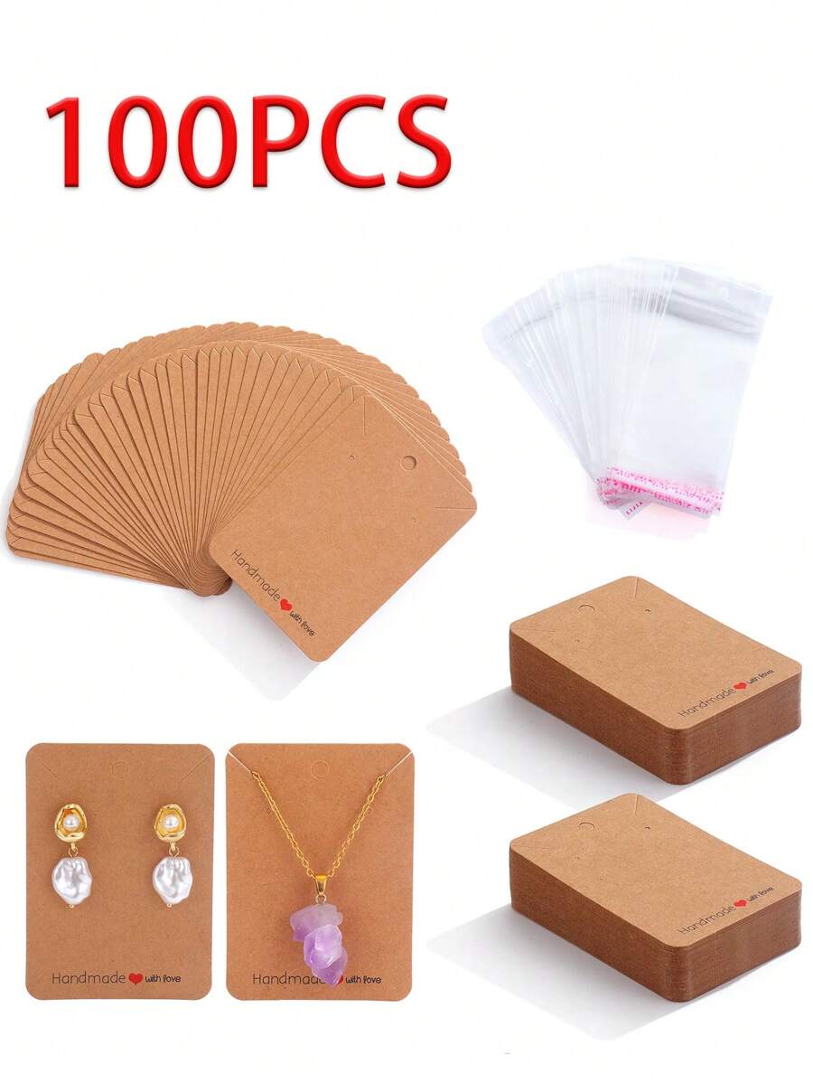 100pcs Necklace & Earring Kraft Paper Cards With 50 Sets Of Jewelry Sales Packaging Bags