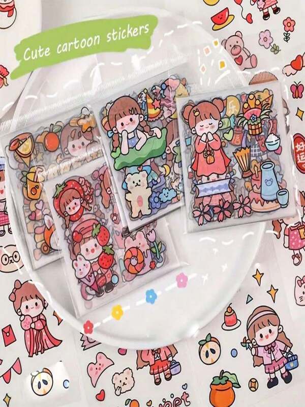 100pcs Non-Repeating Cartoon Pet Stickers For Diy Journal Decoration (Random Color And Parts)