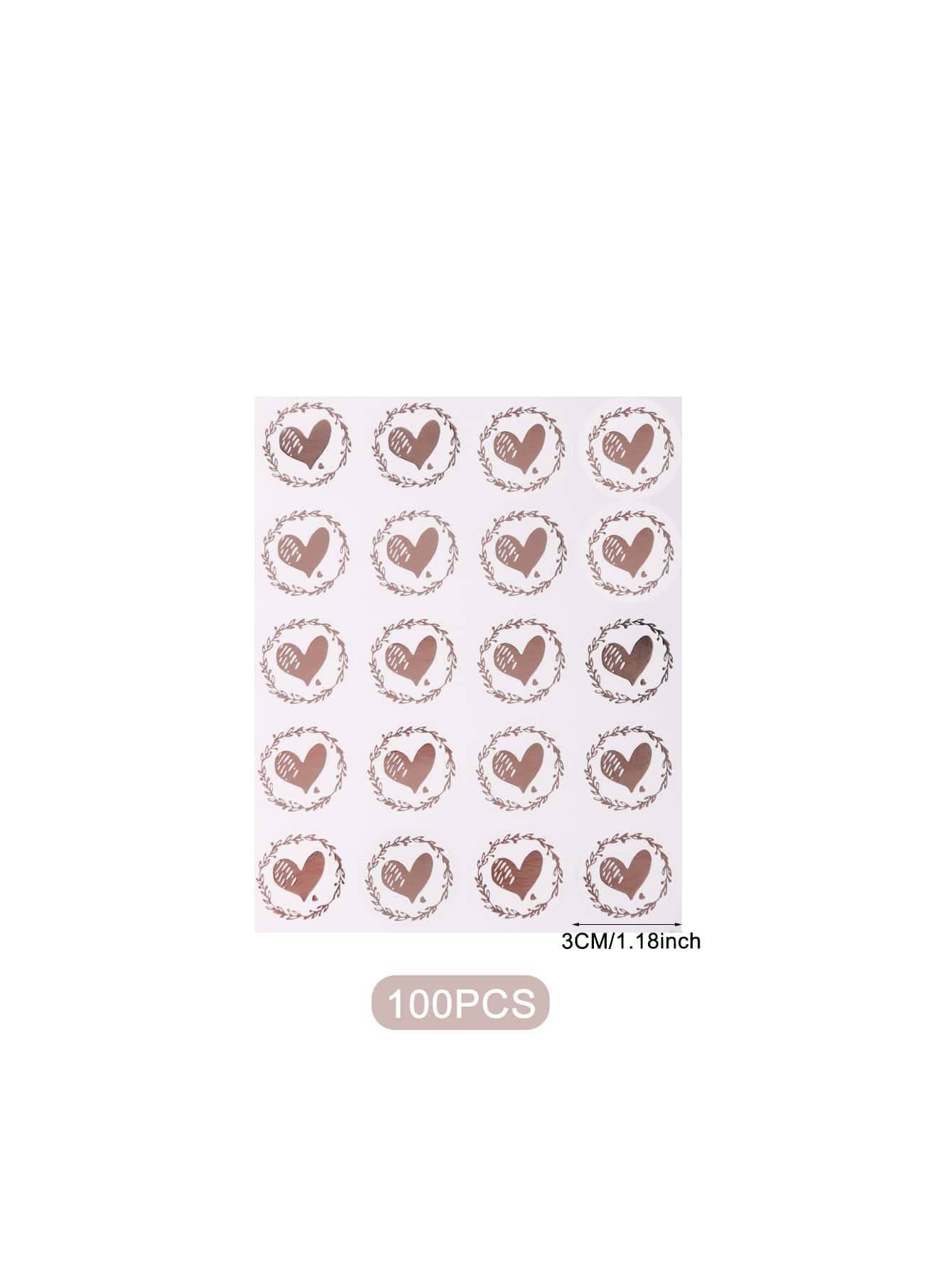 100pcs/1roll Heart Print Gift Sticker, Rose Gold Clear Envelope Seal Sticker, Multifunction Gift Bag Box Sealing Decal