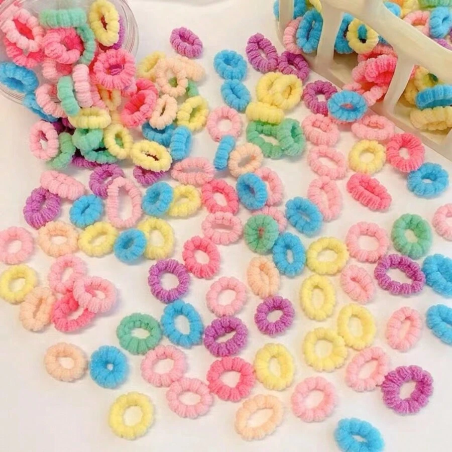100pcs/Pack Girls' Candy-Colored Towel Hair Ties Elastic Hair Bands Without Hurting Scalp