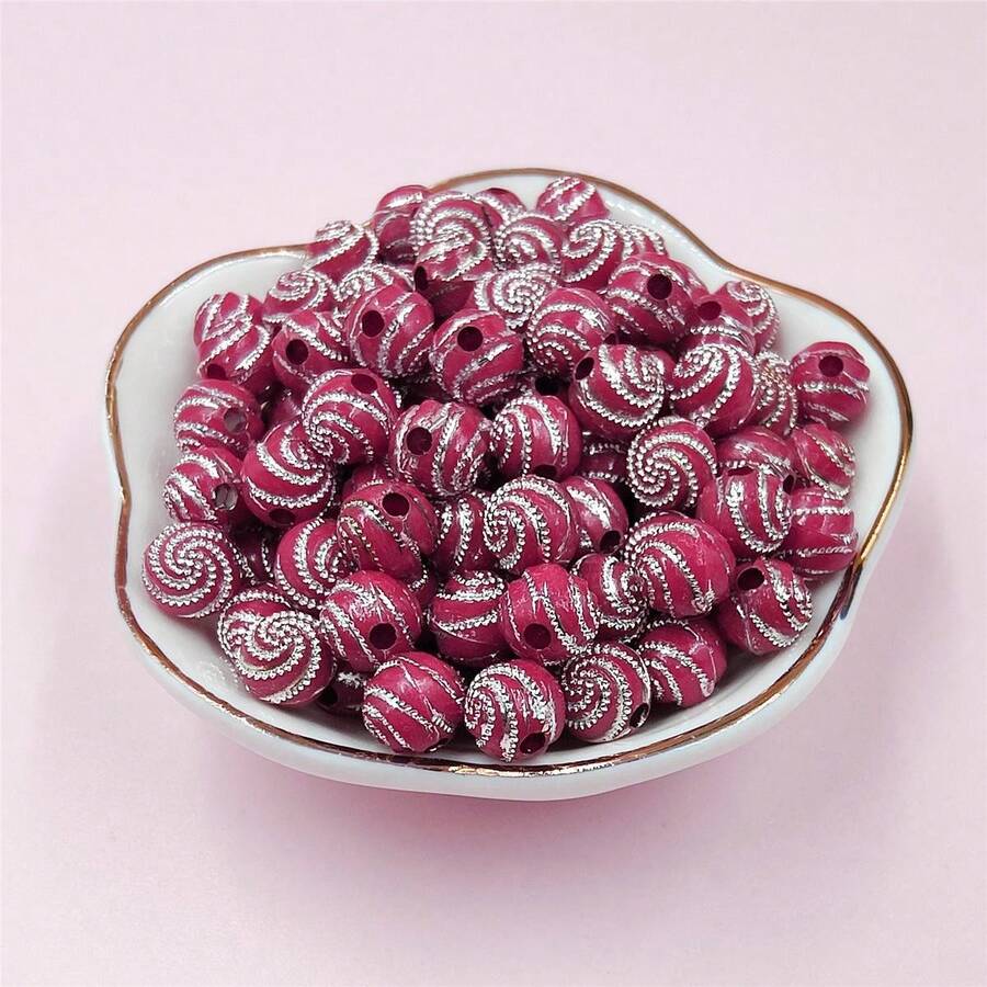 100pieces 8mm Colored Spiral Striped Acrylic Round Beads Handmade DIY Beaded Bracelets With Diamonds Phone Chain Accessories