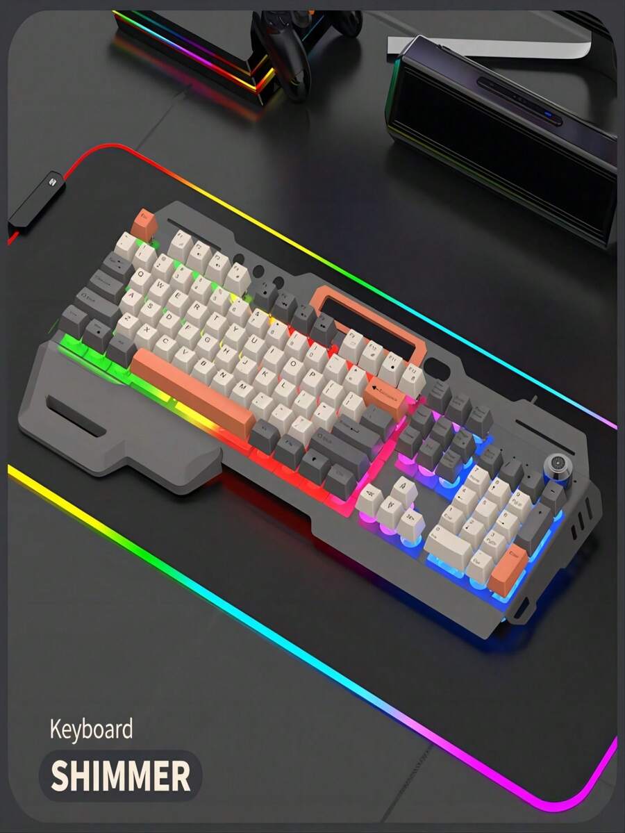 104-Key Mechanical Hand-Feeling Metal Keyboard With Knob & Wrist Rest & Phone Stand & Colorful Backlight, Usb Connection, Suitable For Windows Pc, Desktop Computer, Laptop, Business & Gaming Use