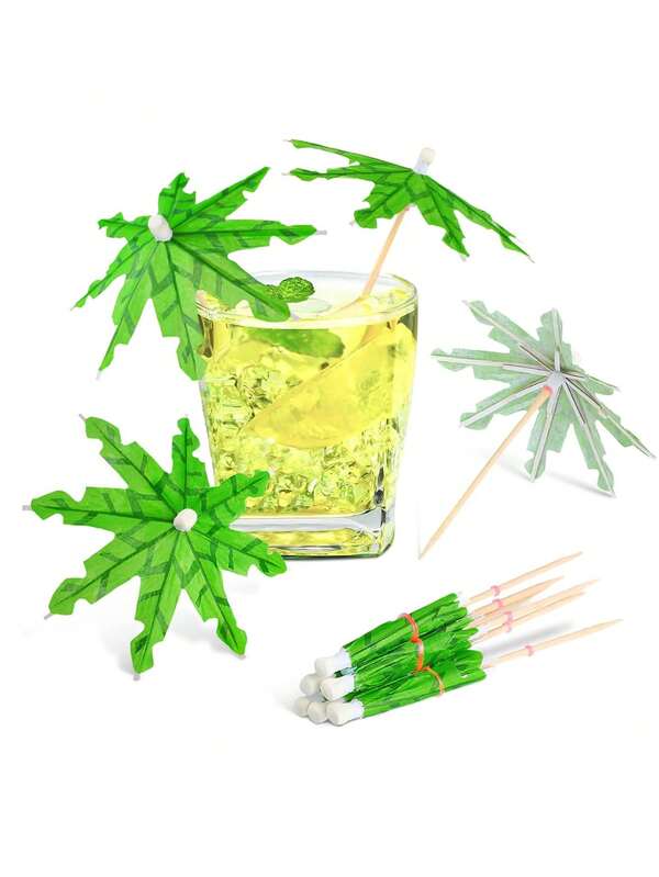 10Pcs Drink Umbrellas Cocktail Picks, Handmade Green Coconut Palm Tree Parasol Fruit Sticks For Drinks Cupcake Fruit Plate Pool Party Bars Decoration