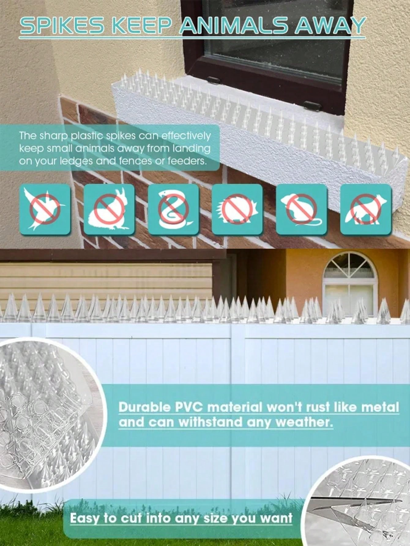 10Pcs/Set Plastic Bird Spike Strips For Cats Anti Squirrel Garden Fences Pigeon Repeller Outdoor Bird Control Spikes Fence Wall Anti-Bird Spikes Garden Supplies