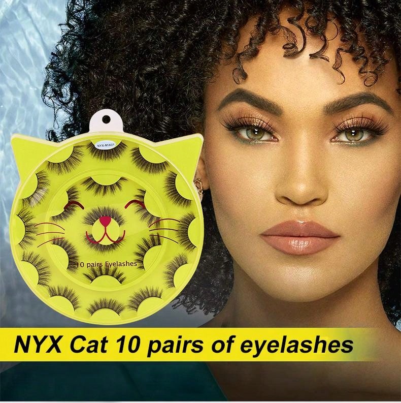 10pairs Cat Eye Style Voluminous 3d False Eyelashes, Dense & Cross Design, With Curl, Not Easily Deformed, Suitable For Party & Heavy Makeup