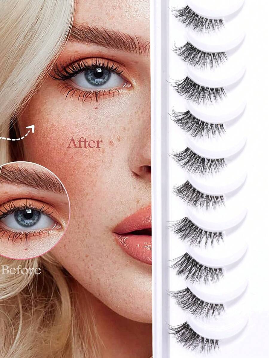 10pairs/Set Transparent Stem Half-Eye Lengthening False Eyelashes, 0.5-1.1cm