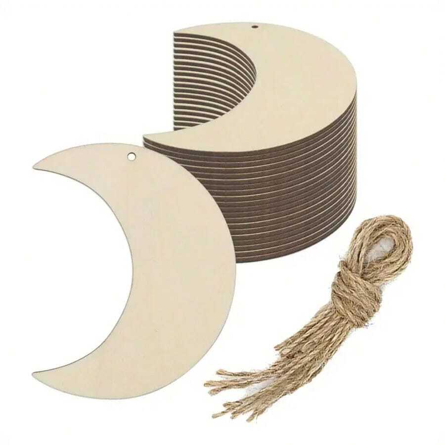 10pc/30pc Wooden Moon Plaza DIY Painted Wooden Pendants Creative Holiday Wall Crafts