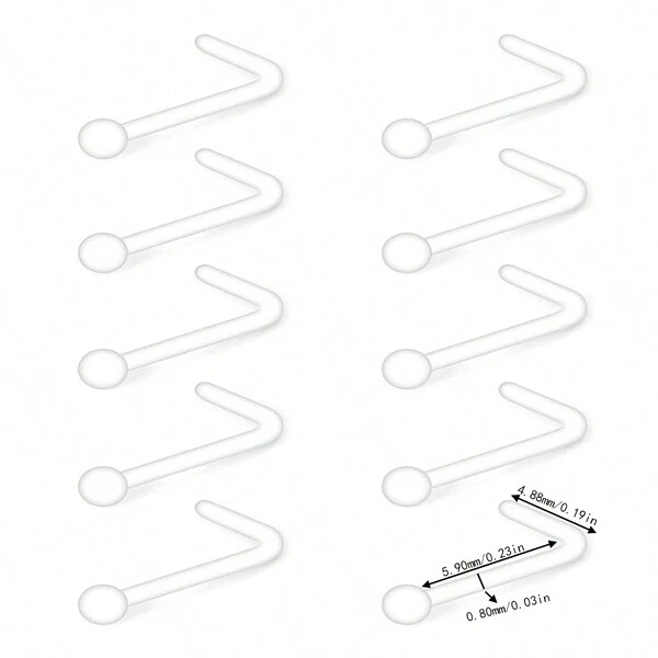 10pcs Acrylic Clear Nose Stud, L-Shaped With Round Ball End, Unisex Casual Wear