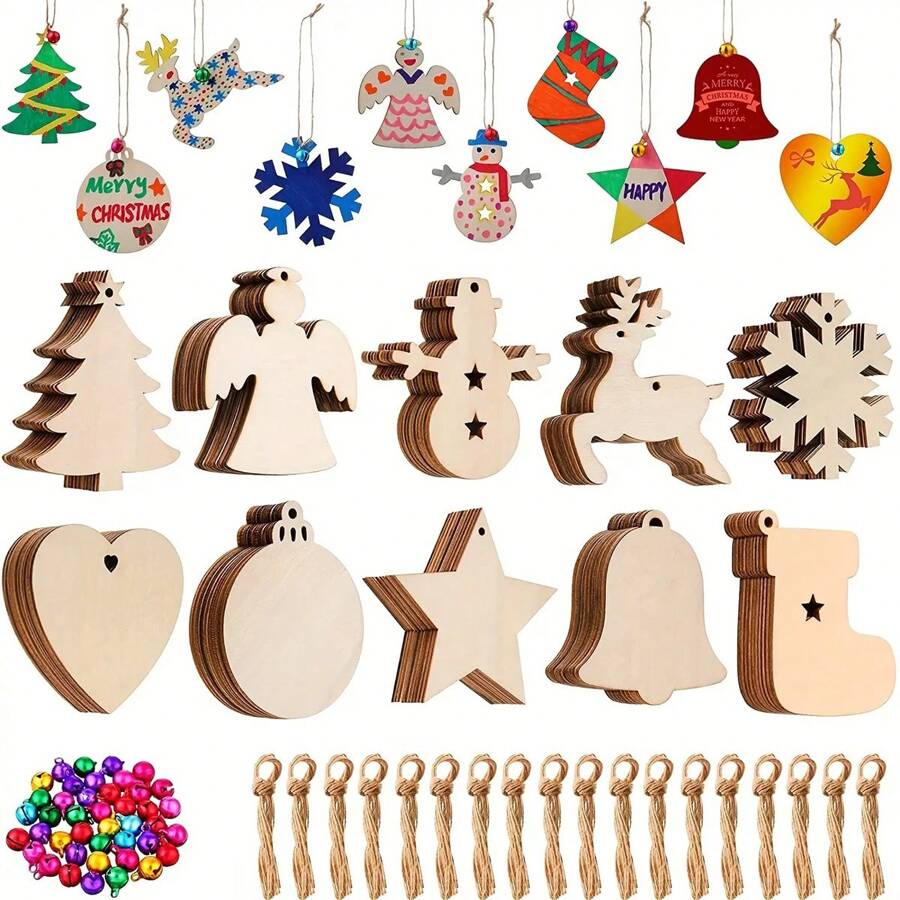 10pcs Christmas Pendant Household Decoration Supplies, Wooden Handicrafts, Creative Carving Wood Chips, Christmas Tree Decorations Gifts, Creative Small Gift, Holiday Accessory, Birthday Party Supplies, Birthday Gift, Art Craft Ornament Gift
