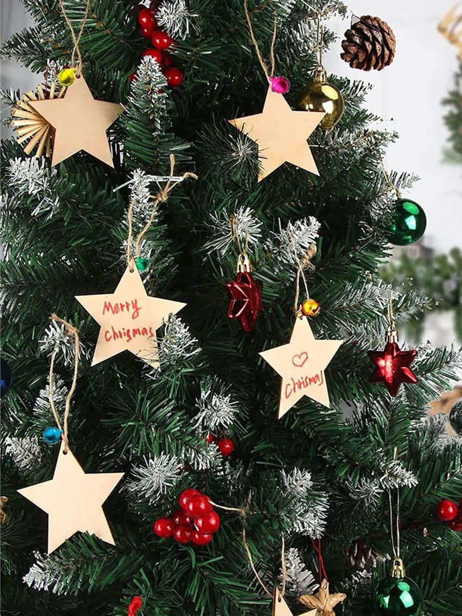 10pcs Christmas Tree Shape Wooden Ornament Festival Decoration Carved Wood Slice Hanging Craft Gift For Home Decor
