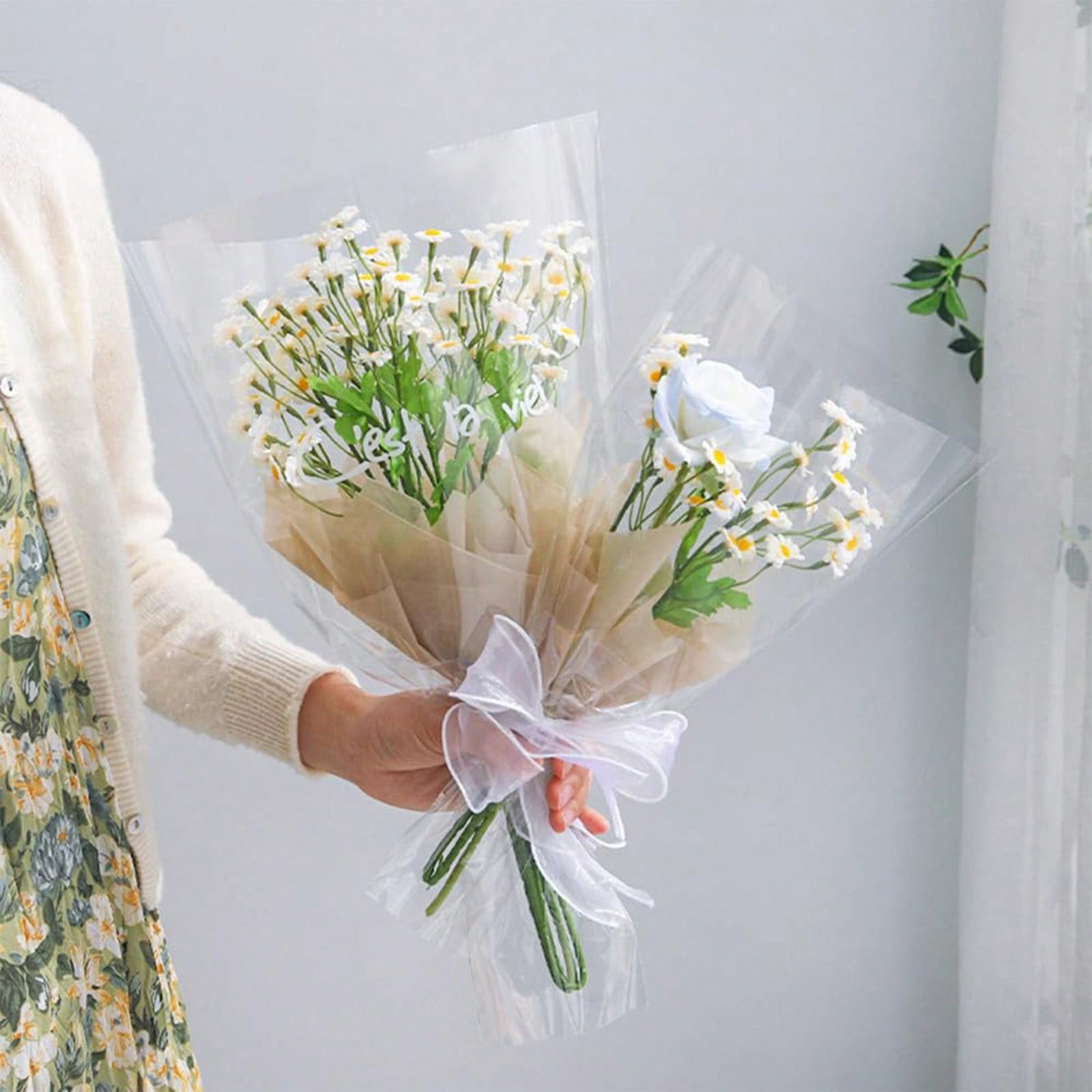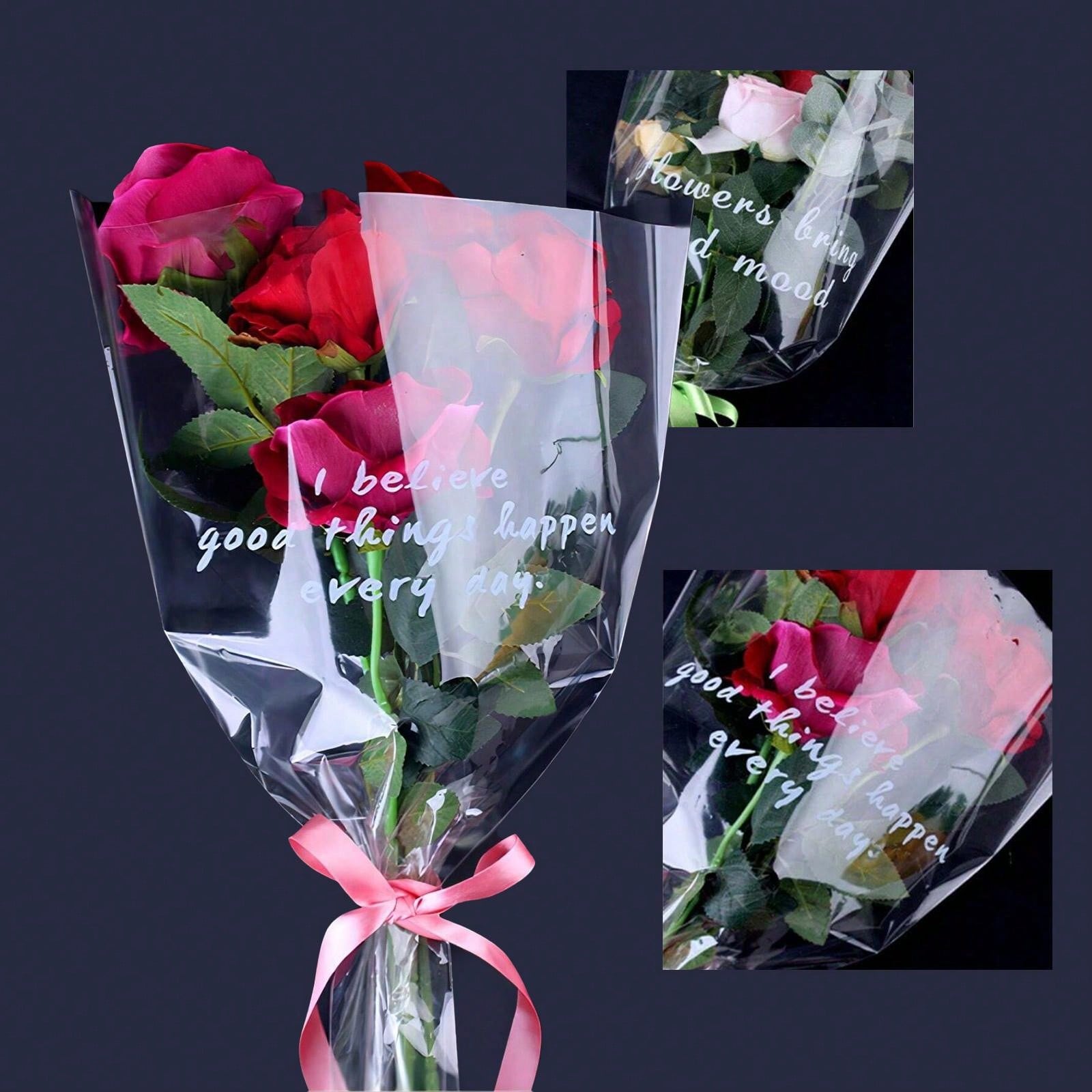 10pcs Clear Flower Patterned Wrapping Paper Gift Bags For Valentine'S Day, Bestie Gifts, Party Decorations