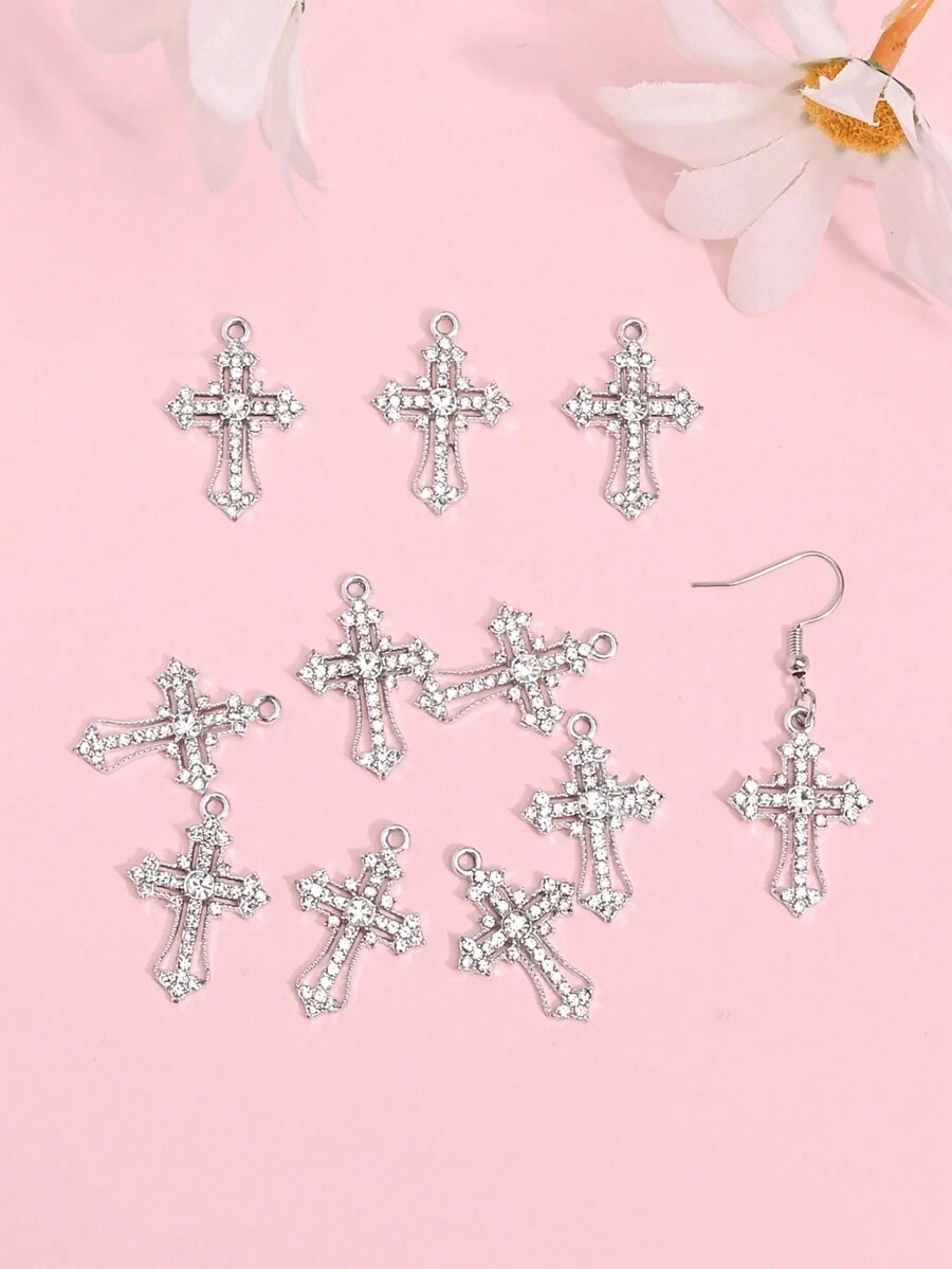 10pcs Dark Style Rhinestone Inlaid Cross Pendant For Necklace, Earrings Diy Punk Themed Jewelry Making Material