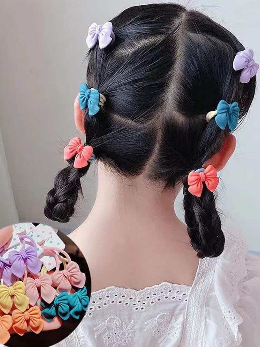 10pcs Girls Bow Decor Cute Hair Tie For Hair Decoration