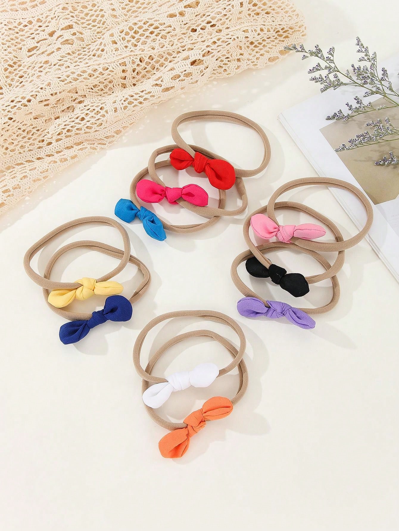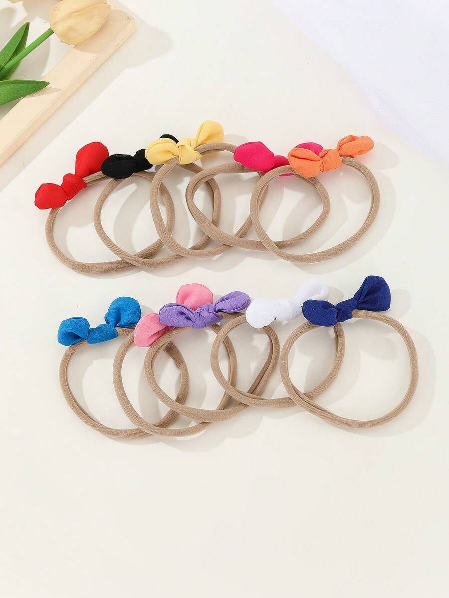10pcs Handmade Chiffon Butterfly Knot Kid'S Headband For Girls, Nylon Elastic Rabbit Ear Hair Tie For Baby, Photo Props, Birthday Party, Outdoor Hair Accessories Set