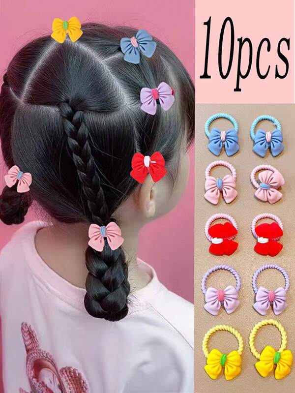 10pcs Kids' Butterfly Knot Bow Tie Decorative Hair Ties, No Damage Hair Elastic Bands
