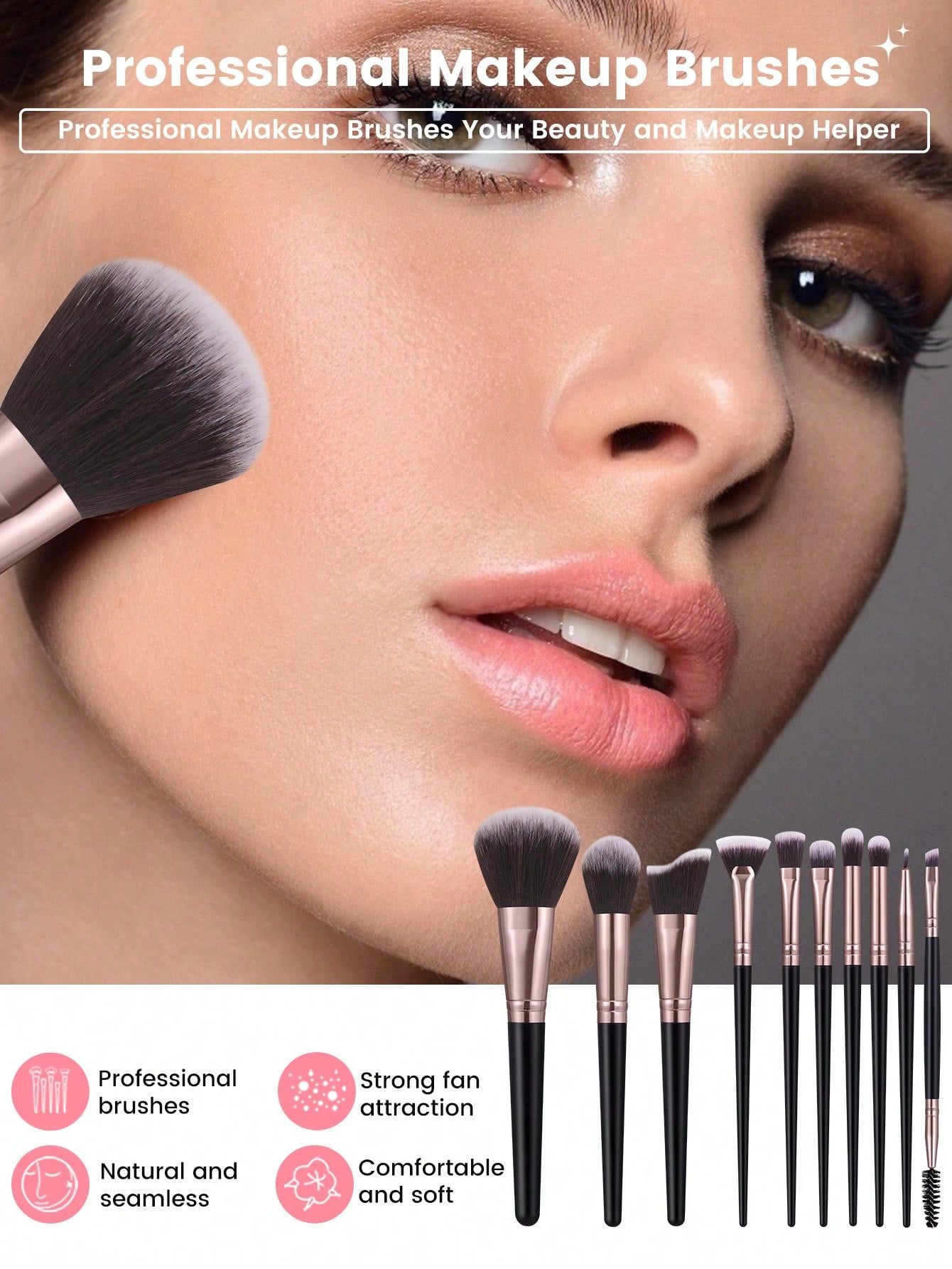 10pcs Makeup Brush Set+7PCS Makeup Puff+3PCS Makeup Sponge+1PCS Cleaning Brush