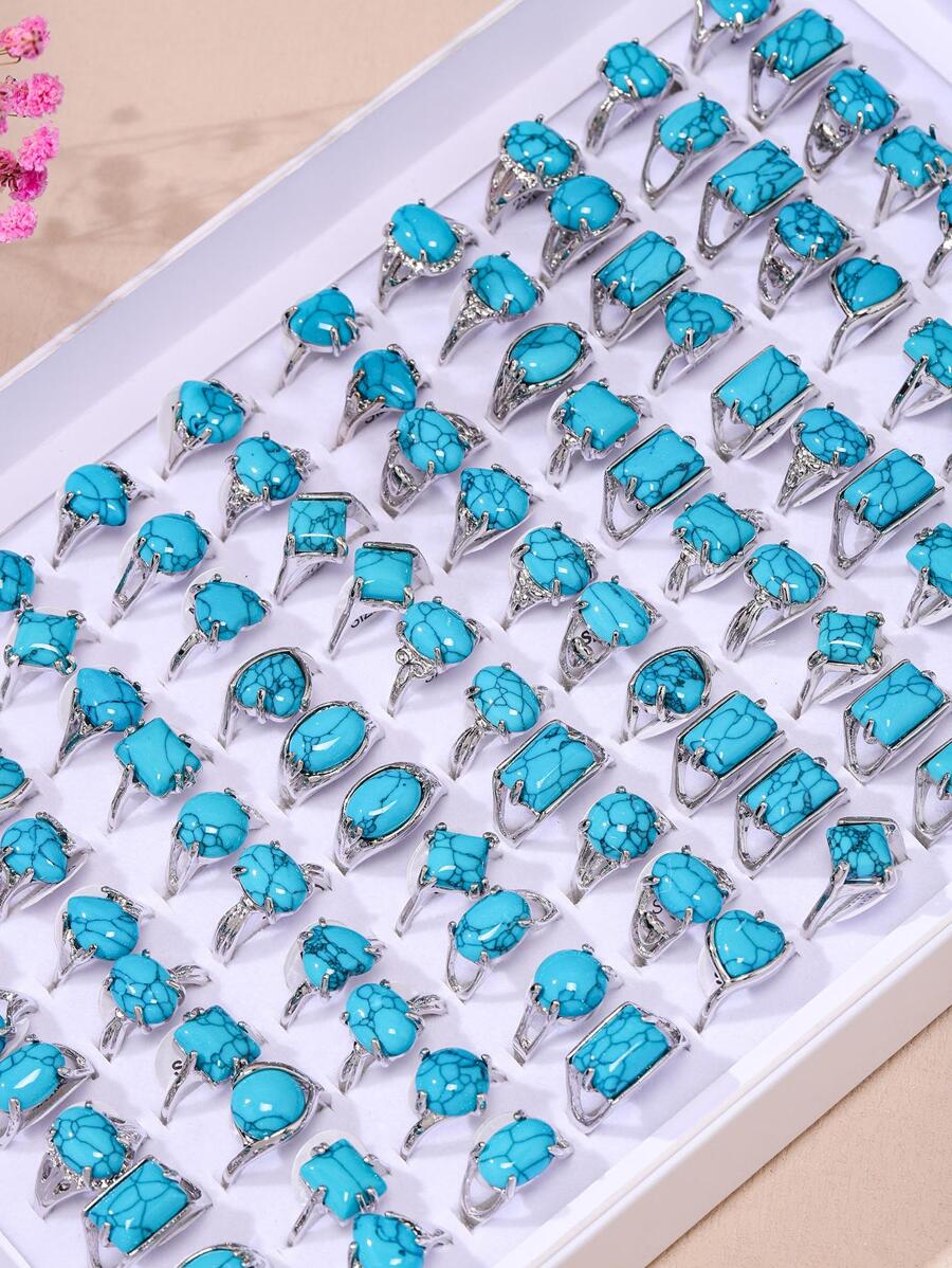10pcs Mixed Blue Turquoise Women'S Rings (Random Size And Style)