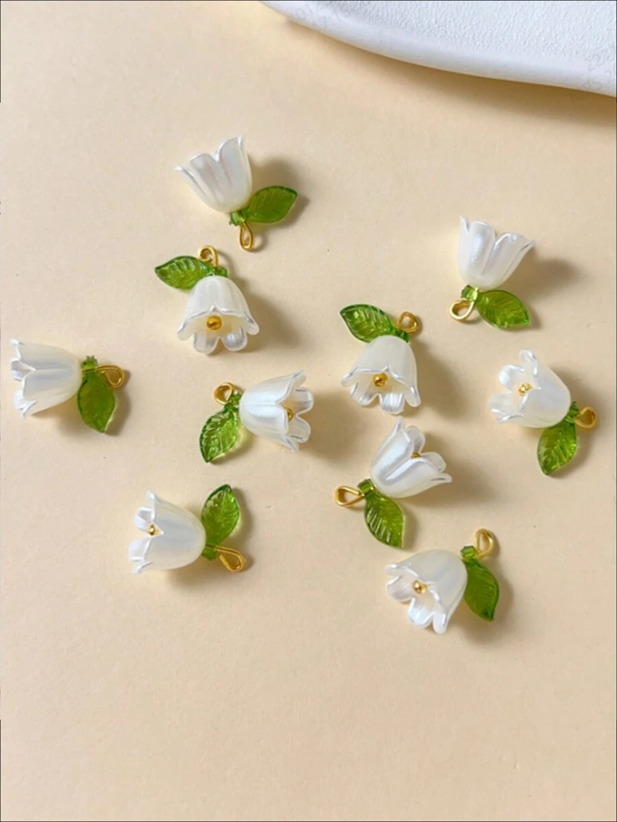 10pcs Pearl, Lily Of The Valley & Plum Flower With 3D Leaf Decorative Beads For Bracelet, Keychain & Pendant DIY Valentines