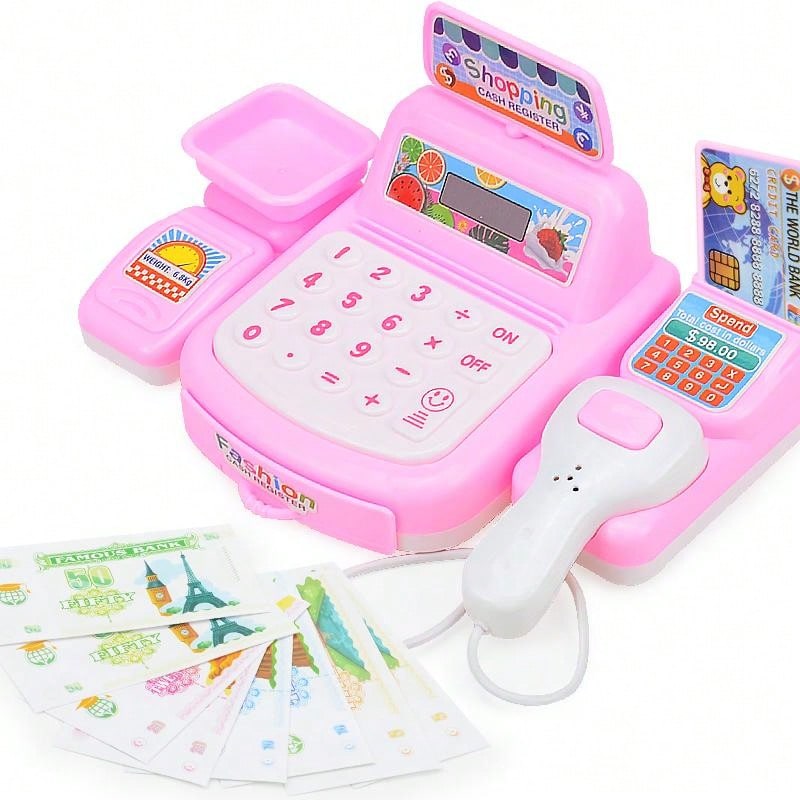 10pcs Pink Kids' Pretend Play Cash Register, Supermarket Toy For Boys & Girls Age 3-5, Role Play Simulator Cashier Machine For Indoor Parent-child Interactive Game, Birthday Gift