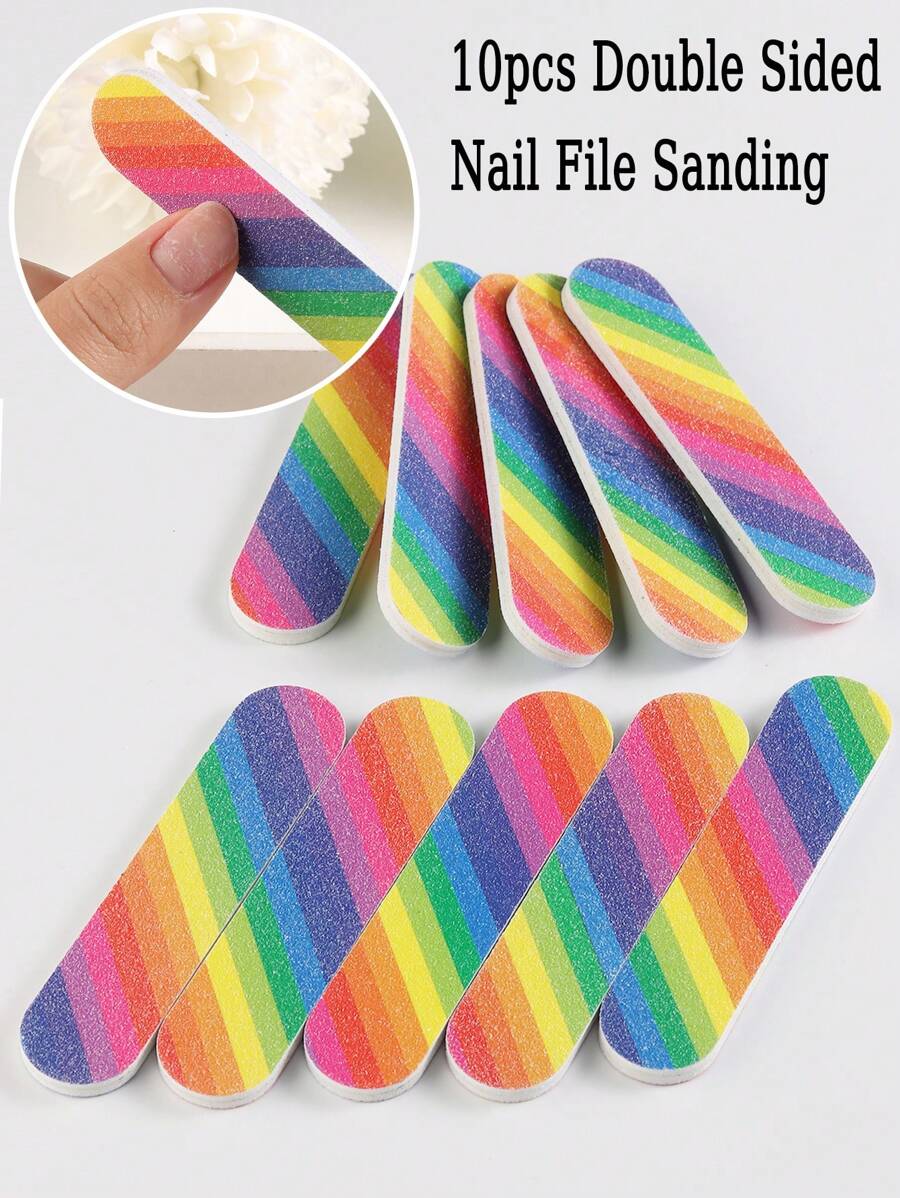 10pcs Rainbow Double Side Nail Polish Sanding,Disposable Mini Nail File Buffer Strips,Grinding Polishing Manicure Care Tools