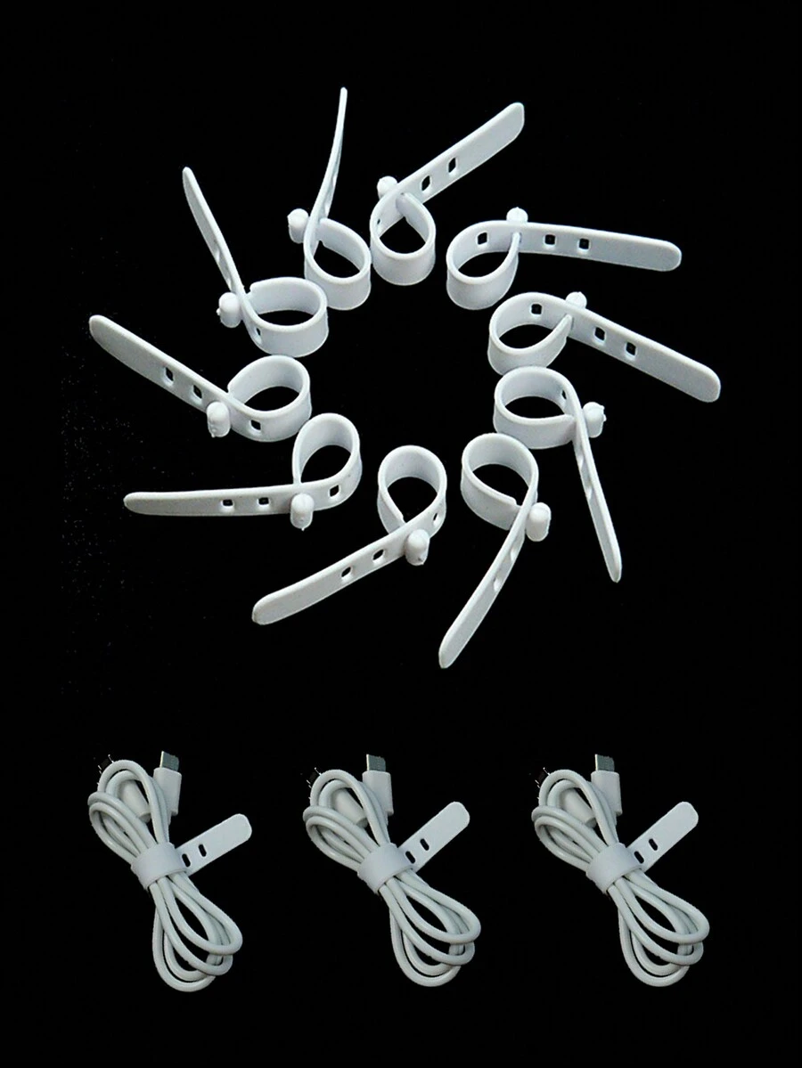 10pcs Silicone Cable Ties For Data & Headphone Cords, Portable Cable Organizer With Adjustable Holes
