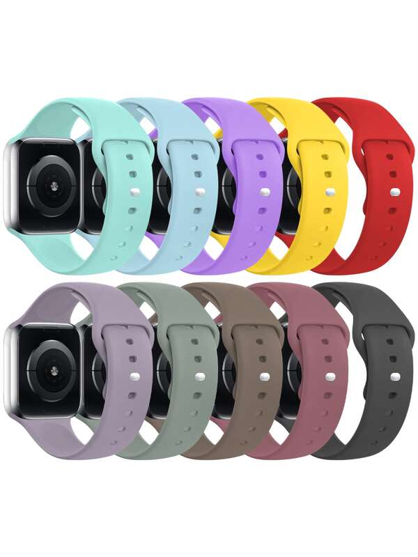10pcs Solid Silicone Watchband Compatible With Apple Watch