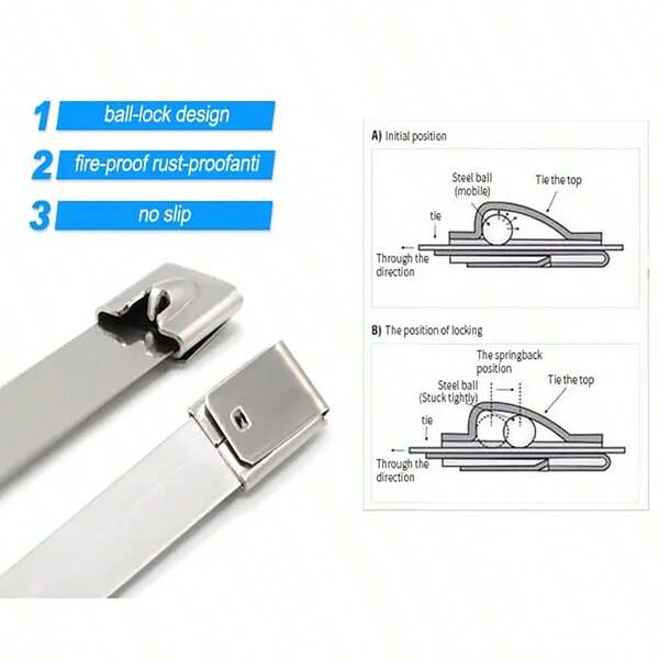 10pcs Stainless Steel Cable Tie - 304 Ball Lock Zip Ties With Self-Locking Cable Ties 12 Inch For Indoor, Outdoor & Marine Use (High Temperature Resistance)