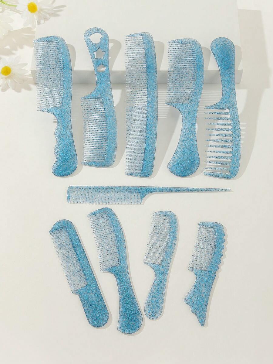 10pcs Women'S Blue Anti-Static Hair Combs, With Large Teeth For Straightening And Curling, Portable Pocket Size Hair Combs For Travel, Daily Use