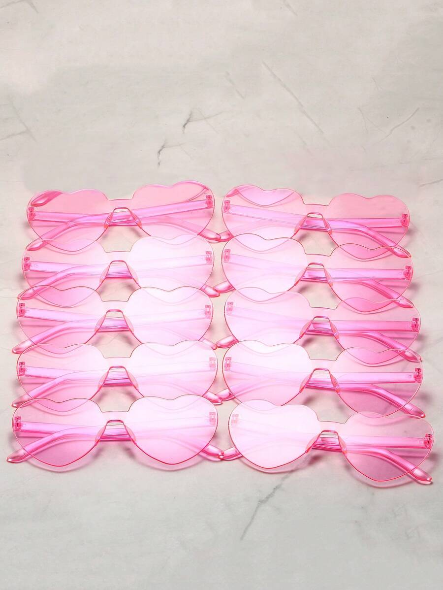 10pcs Women'S Pink Heart-Shaped Pc Eyeglasses Decorative Fashion Glasses For Valentine'S Day Events/Party
