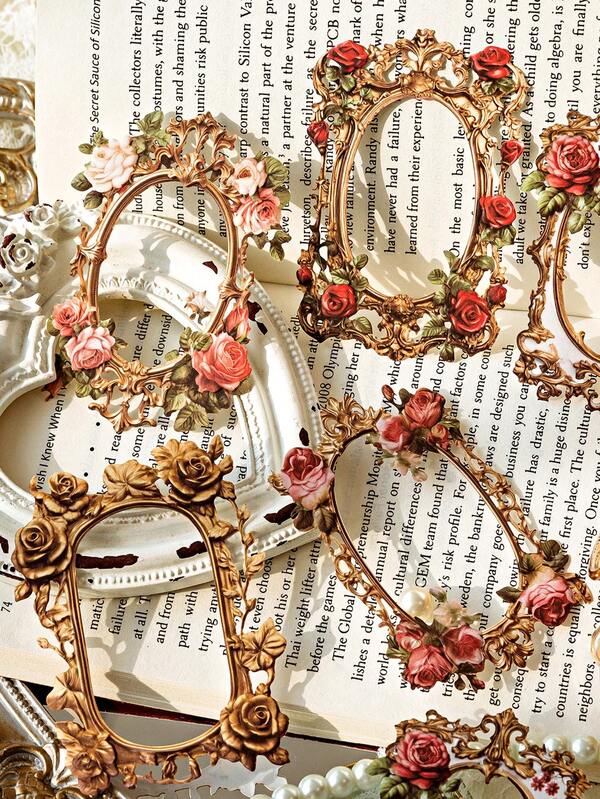 10pcs/Pack Vintage Floral Hollow Out Frame Scrapbooking Material, Diy Decorating Supplies, Festival Gift, School Stationery