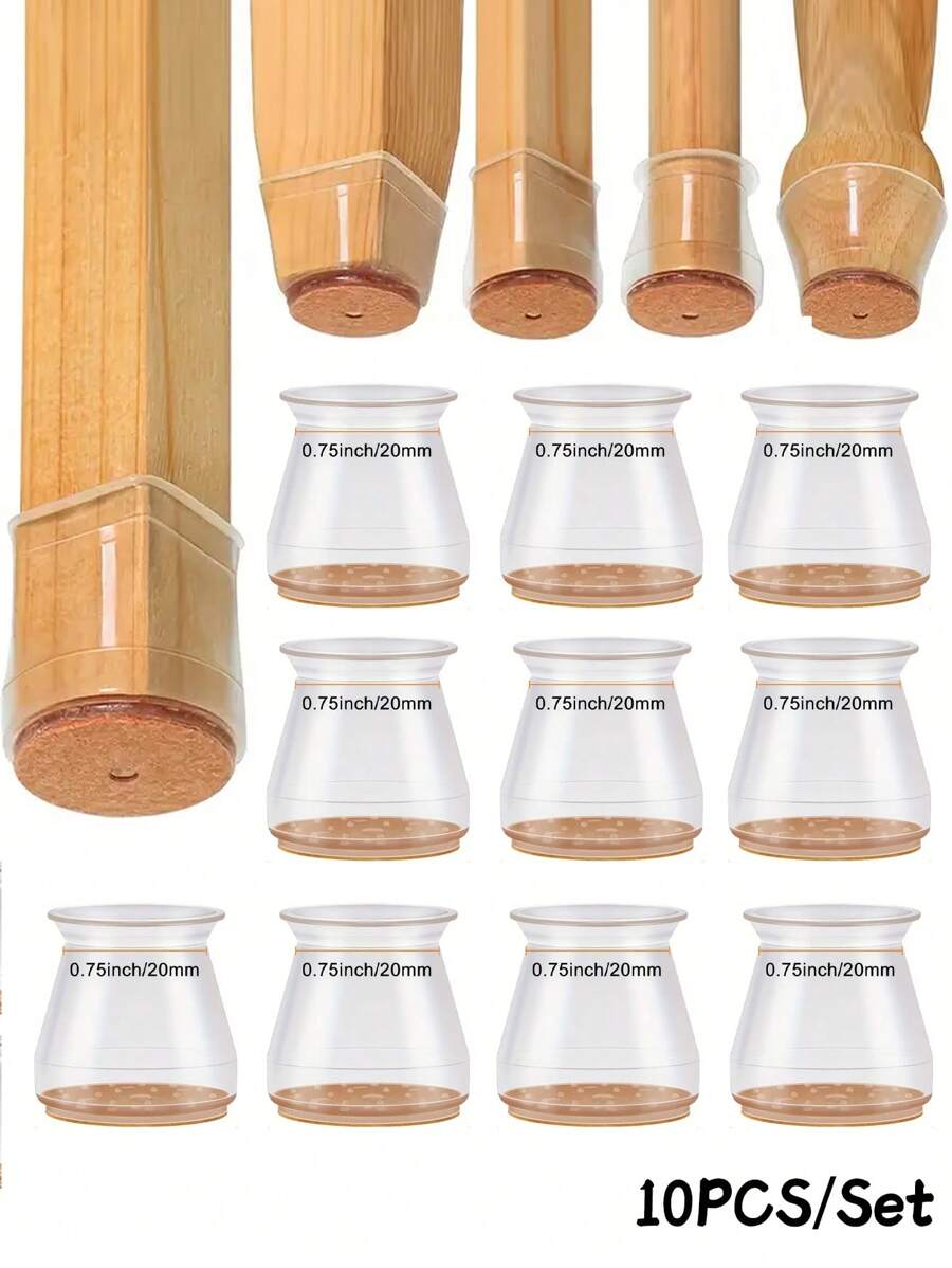 10pcs/Set Chair Leg Floor Protectors, Silicone Chair Leg Covers,Chair Leg Floor Protectors Square, Silicone Felt Furniture Leg Pads Caps Covers For Hardwood Floors,Small Floors Felt Pads Reduce Noise,Chair Leg Protectors For Hardwood Floors,Non-Slip Furniture Pads,Furniture Accessories,New Transparent Thickened Chair Leg Covers Furniture Felt Table Chair Foot Pads,Keep Your Floors Scratches Noise