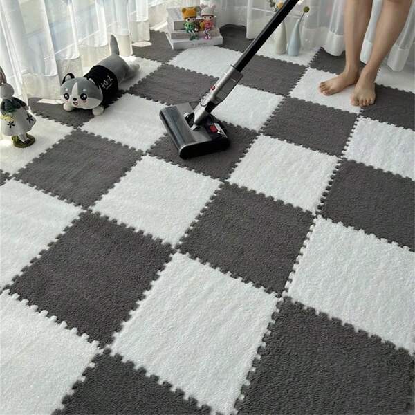 10pcs/Set Ins Style Patchwork Carpet For Living Room Sofa Puzzle Mat, Bedroom Bedside Anti-Slip Solid Color Pad
