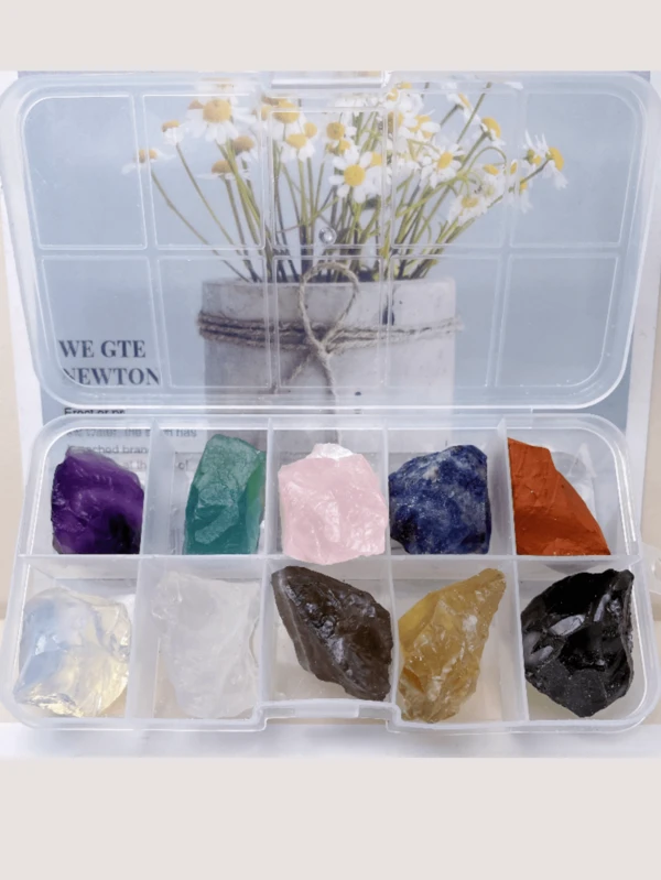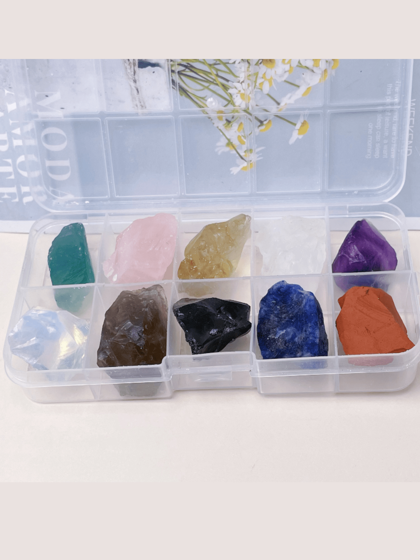 10pcs/Set Natural Crystal Rough Raw Set Healing Energy Gemstones Rough Rocks and Mineral Chakra Healing Stone with Box