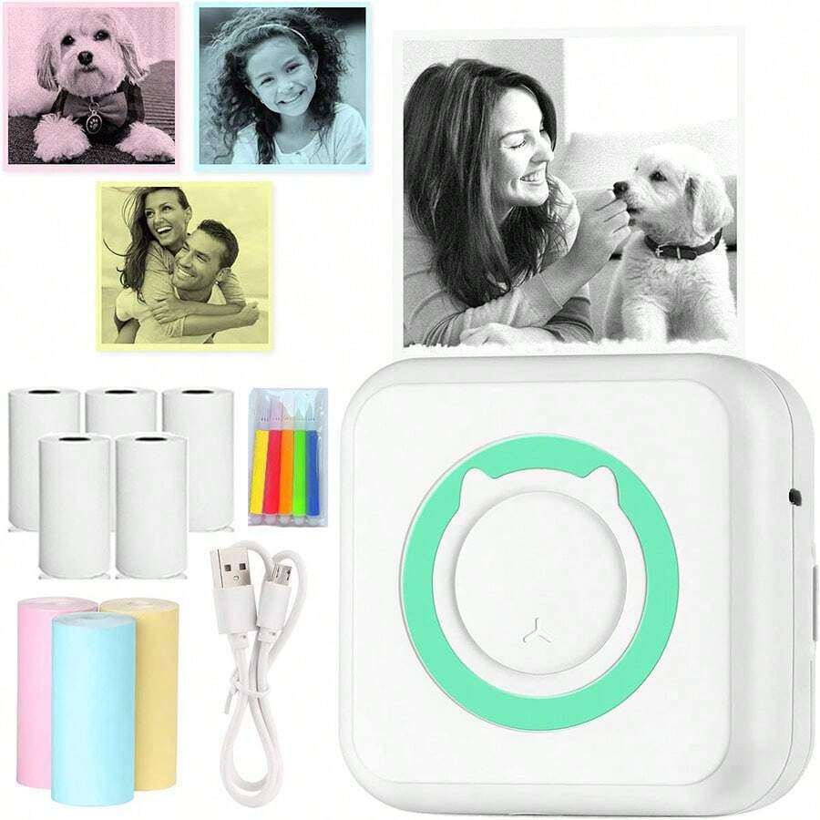 10pcs/Set Portable Thermal Printer, With 10 Rolls Of Printing Paper, Compatible With Ios/Android Smartphones, For Mobile Wireless Printing Of Labels, Receipts, Stickers, Photos, Lists, Notes, Non-Ink Intelligent Printing