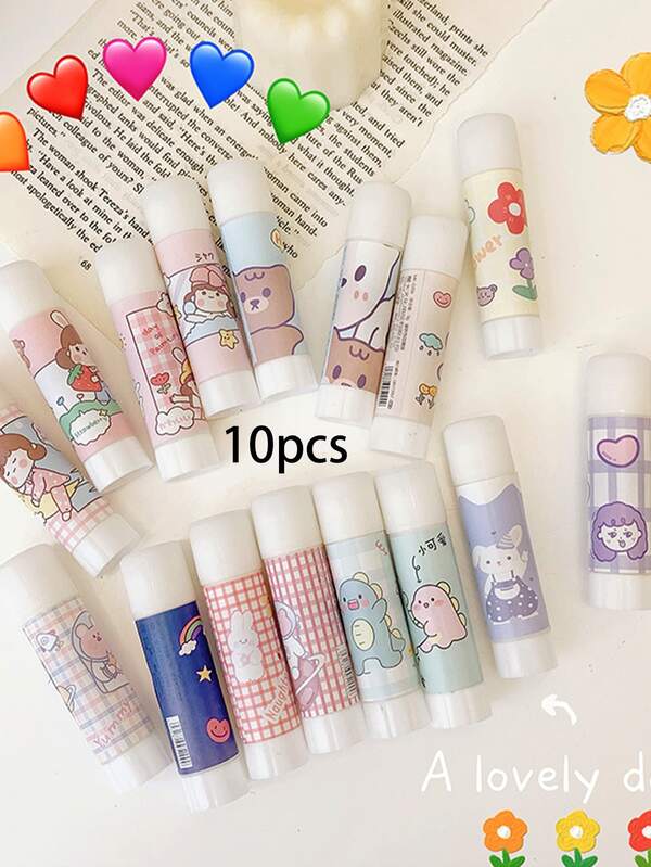 10pcs/pack Cartoon Solid Glue Stick, High Viscosity Strong Adhesive Stationery For Office Supplies