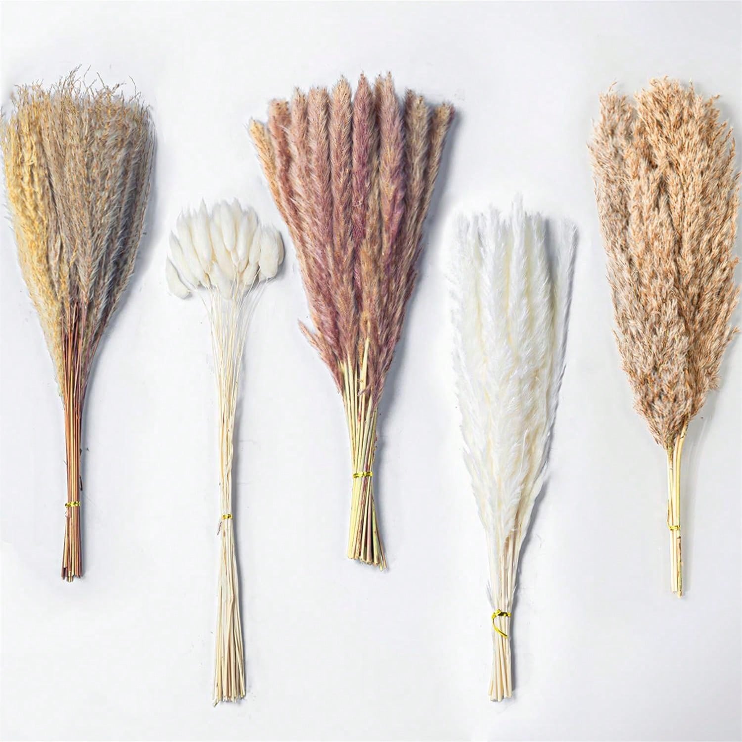 110pcs Dried Pampas Grass Decoration - 17.3" Natural Pampas Grass, Lagurus Ovatus & Reed Flower Bouquet For Wedding Bohemian Flower Home Table Decor, Rustic Farmhouse Party