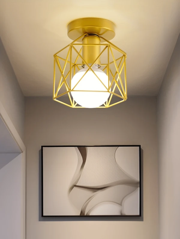 110v-130v Semi Flush Mount Ceiling Light, E26 Base Gold Industrial Metal Cage Light Fixtures Ceiling for Farmhouse Kitchen Bedroom Hallway Garage Porch, Bulb not included