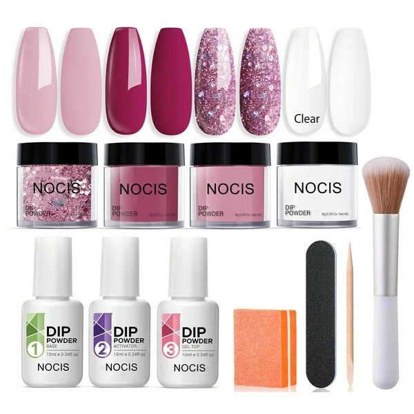 11pcs Dip Powder Nail Kit For Beginners, 4 Colors Transparent Nude Color Glitter Dip Powder System Liquid Kit With 15ml Base And Activator For French Nails Diy Salon