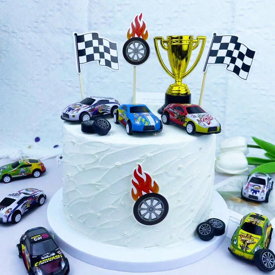 11pcs Racing Theme Cake Decoration Including Racing Car Cake Topper, Checkered Flag & Racing Car Patterned Cupcake Wrappers & Toppers, Suitable For Racing Theme Birthday Party