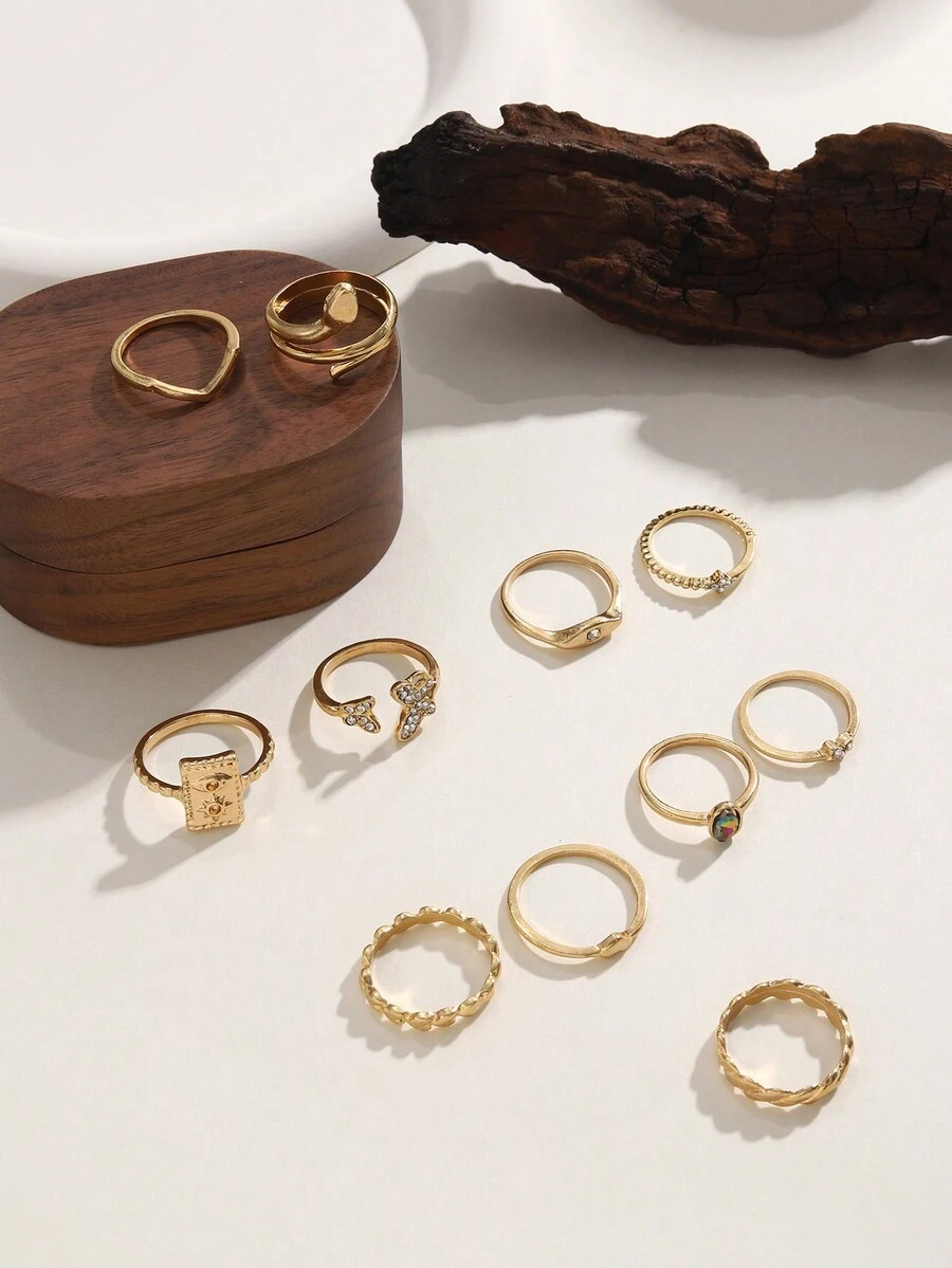 11pcs/Set Vintage Minimalist Stacking Ring Set, Suitable For Women'S Travel Outfits And Best Friend Gift, Zinc Alloy Material