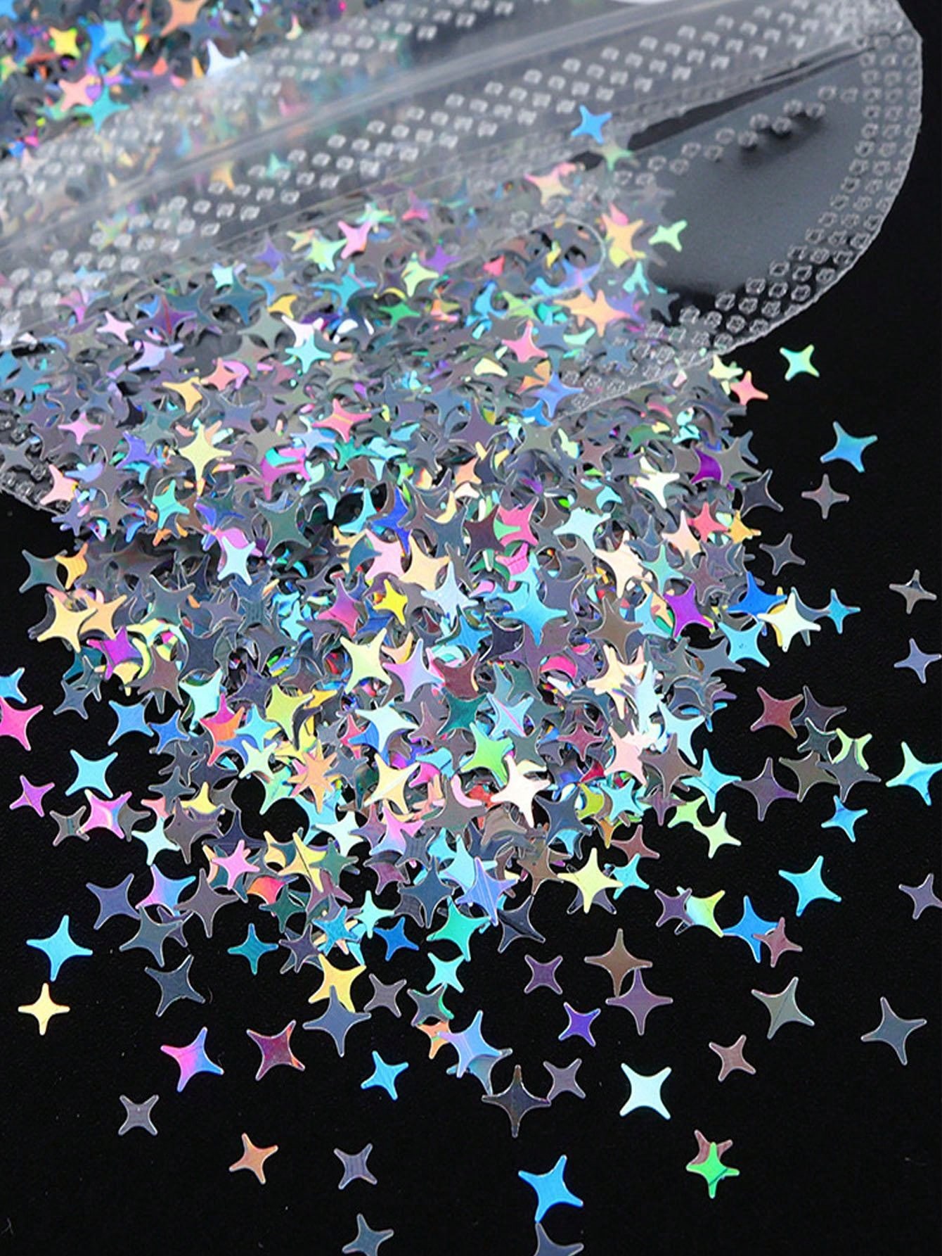 12 Packs/1 Set DIY Laser Four-Pointed Star Nail Art Sequins, DIY Jewelry Accessories, Crystal Glue Filled Sequins