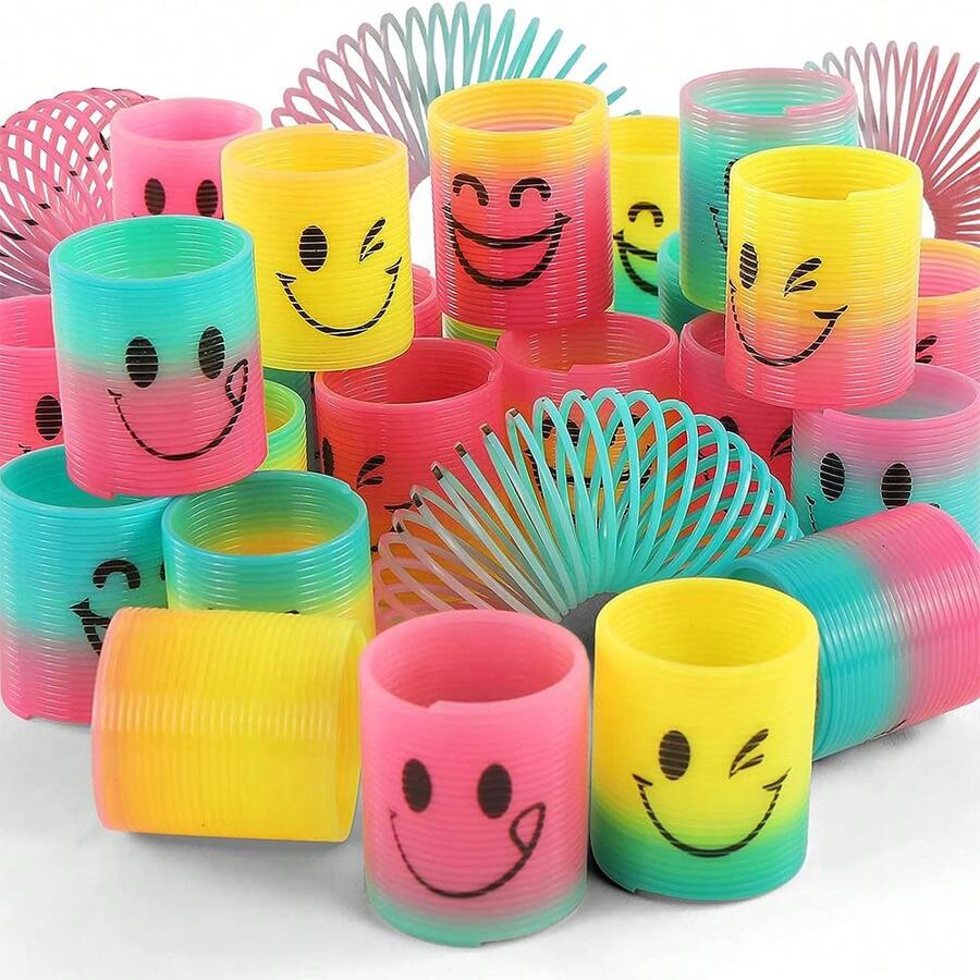 12 Pcs Gradient Color Rainbow Circle Colorful Elastic Circle Face Spring Circle Birthday Party Gift Kindergarten Toy