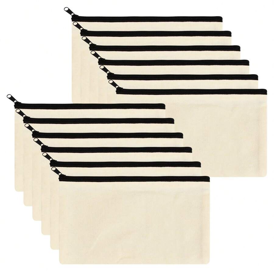 12 Pieces Fabric Pencil Case, DIY Blank Fabric Bag, Small Zip, Bridesmaids Gift Cosmetic Bag, Fabric Bag For Painting For DIY, Make-Up, Cosmetics, Toiletries, 21 X 12 Cm, Beige, Cosmetic Bag