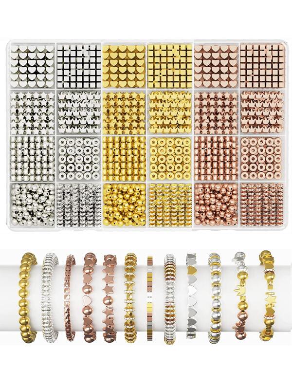 1200Pieces Gold Spacer Beads Set, Assorted Round Star Gold Beads for Bracelet Jewelry Making(Gold, Sliver, Rose Gold)