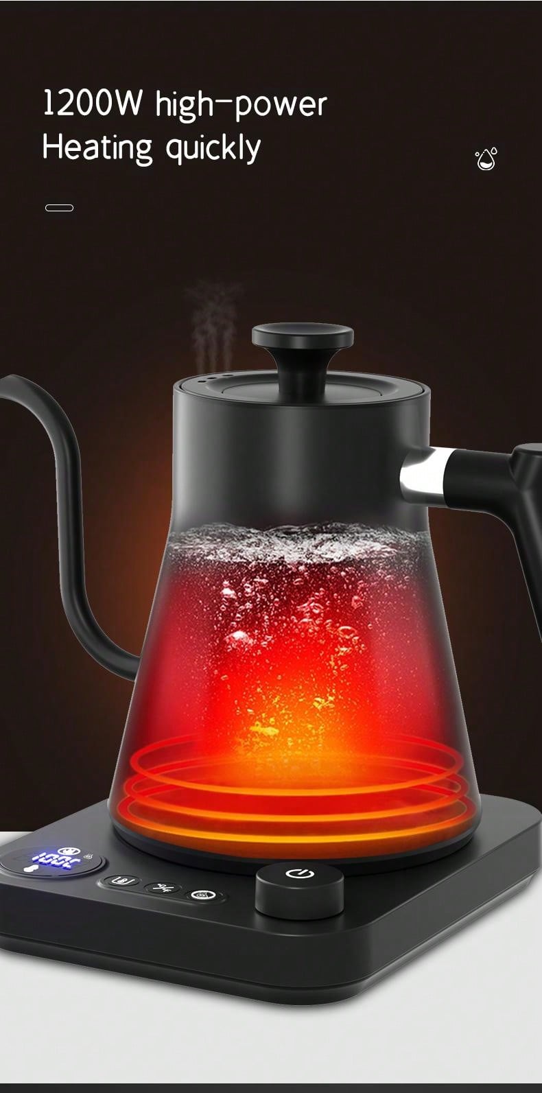 1200W Intelligent Constant Temperature Electric Kettle Hand Brewed Coffee Pot 304 Stainless Steel Gooseneck Kettle Used For Brewing Tea Coffee And Boiling Water In Homes And Offices